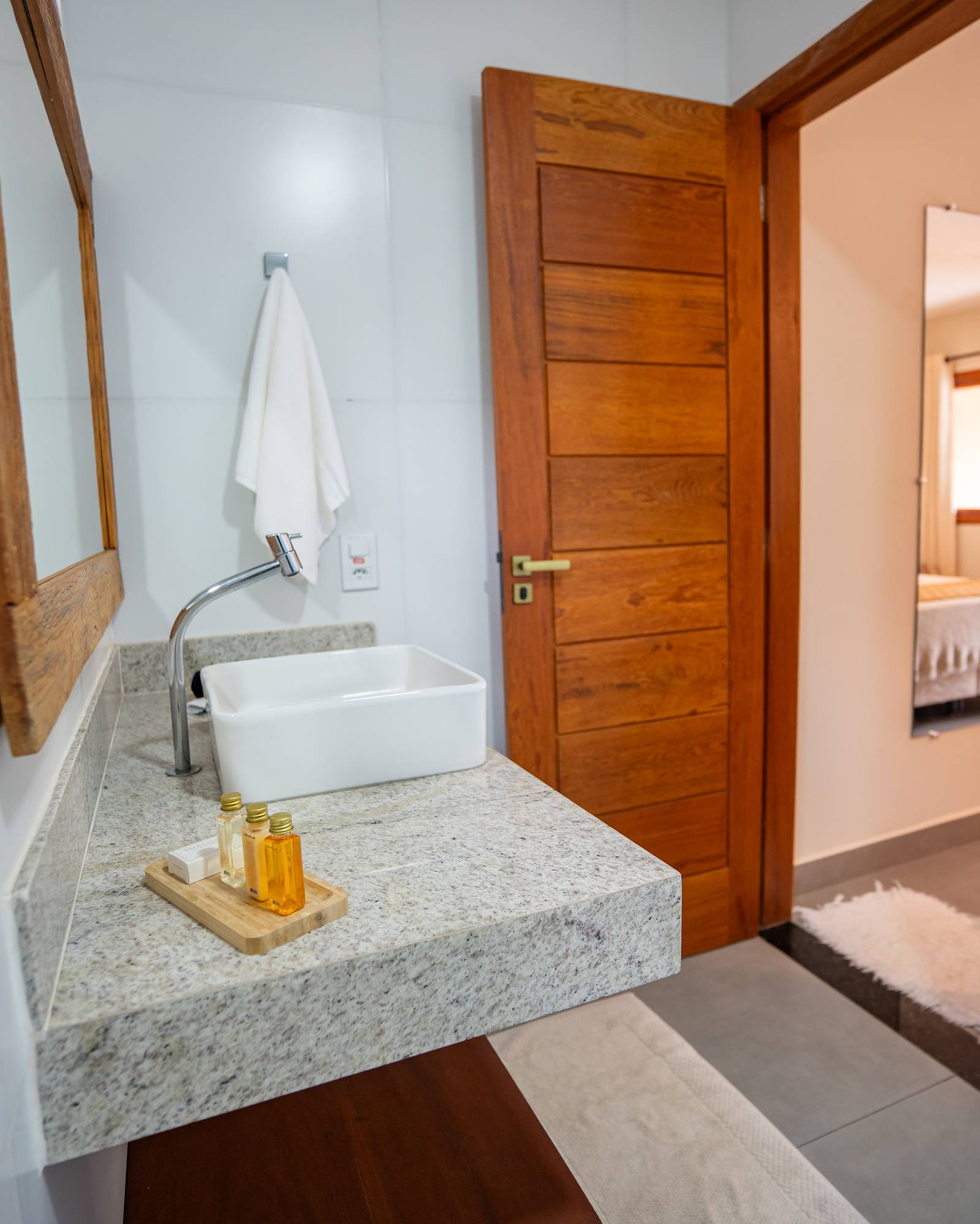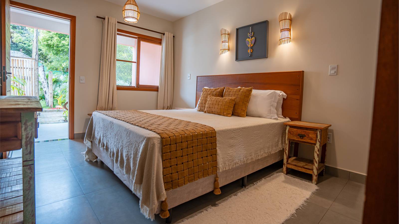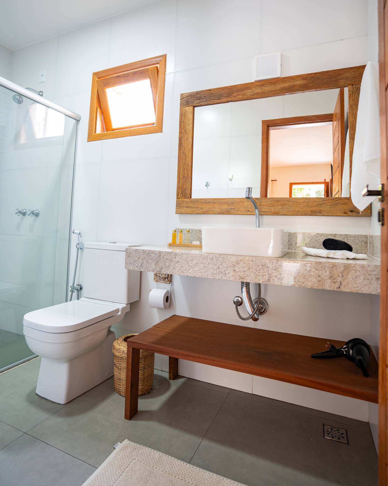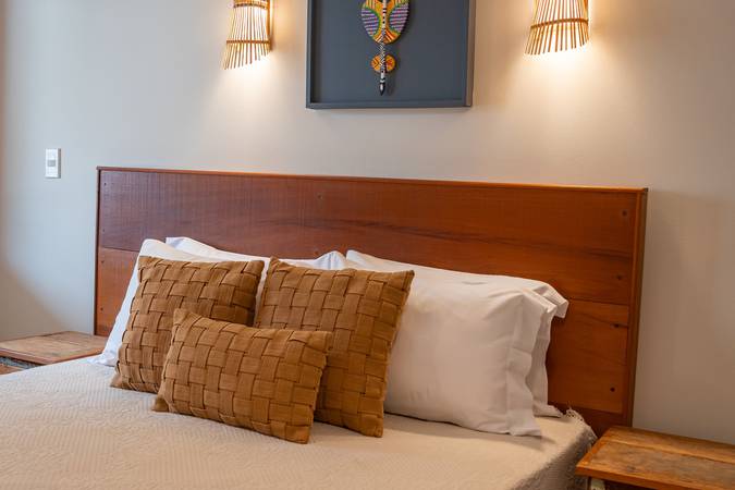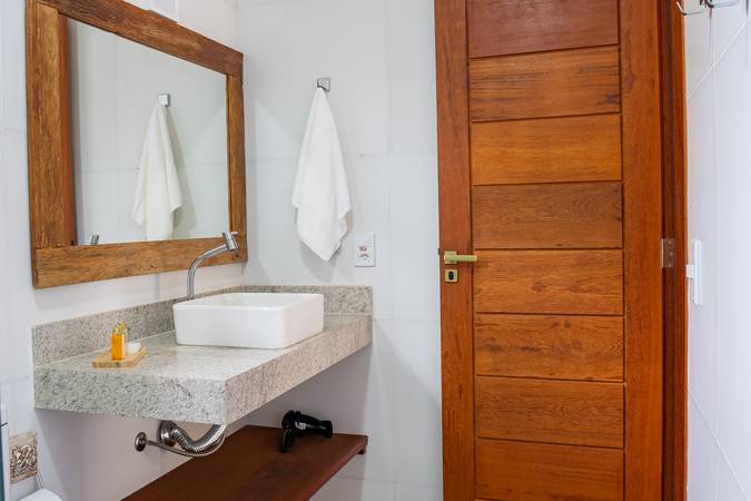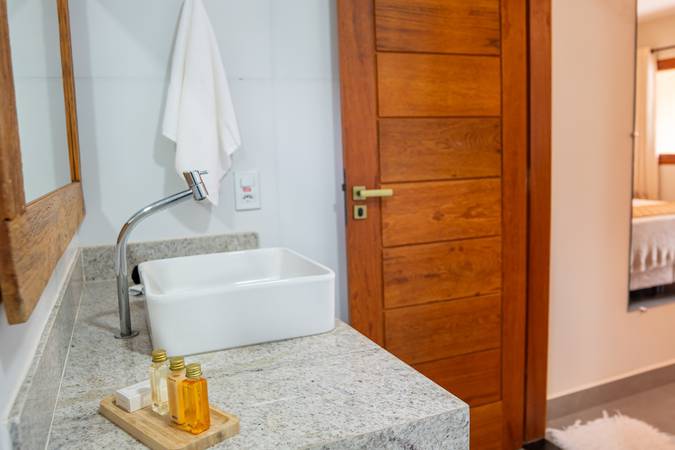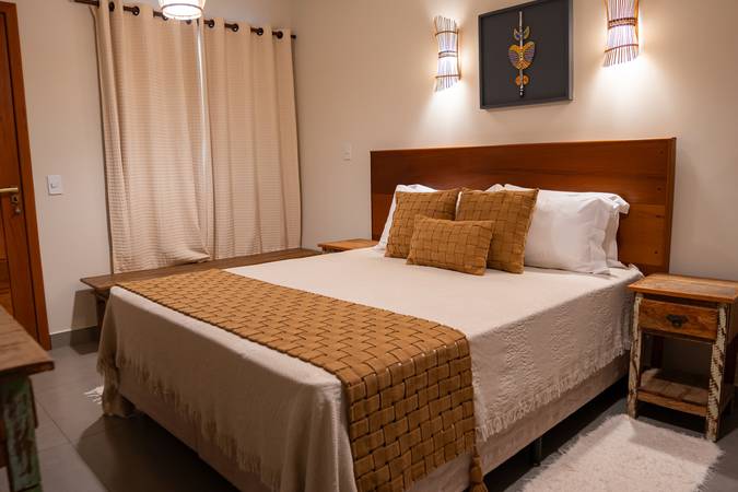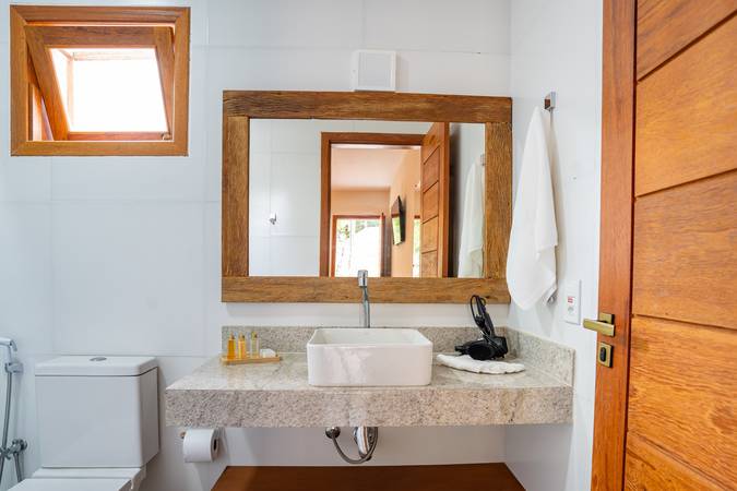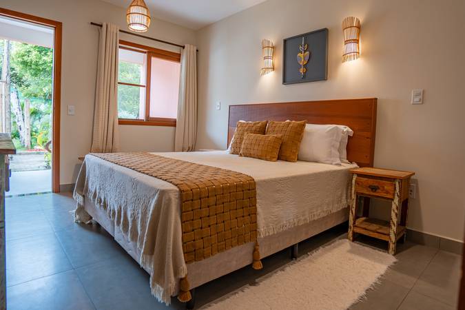 Suíte ampla e sofisticada, situada no andar térreo com varanda para o jardim, decoração pensada em cada detalhe para proporcionar conforto e exclusividade. Acomoda um casal em cama Queen. Banheiro amplo com secador de cabelo, toalha própria para remoção de maquiagem e amenities Trousseau.