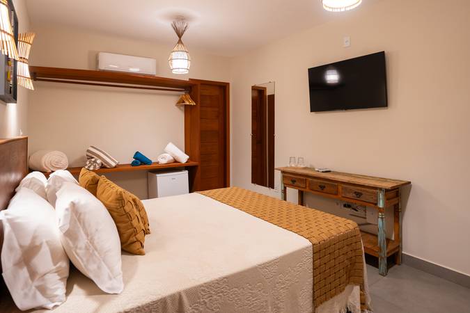 Wifi TV Frigobar Ar Condicionado Secador de Cabelo Cama Queen-Size Amenities Enxoval Completo Ducha
