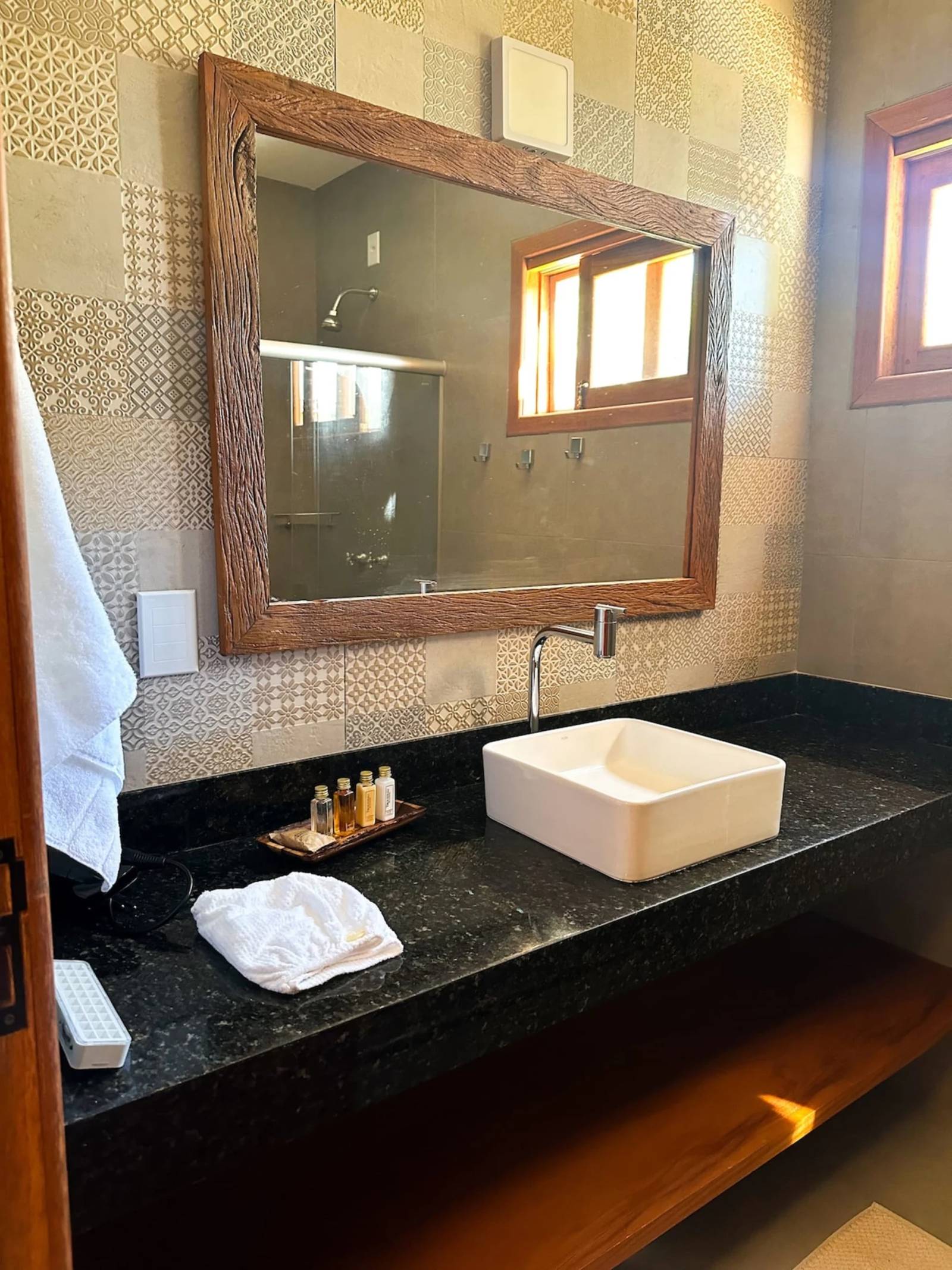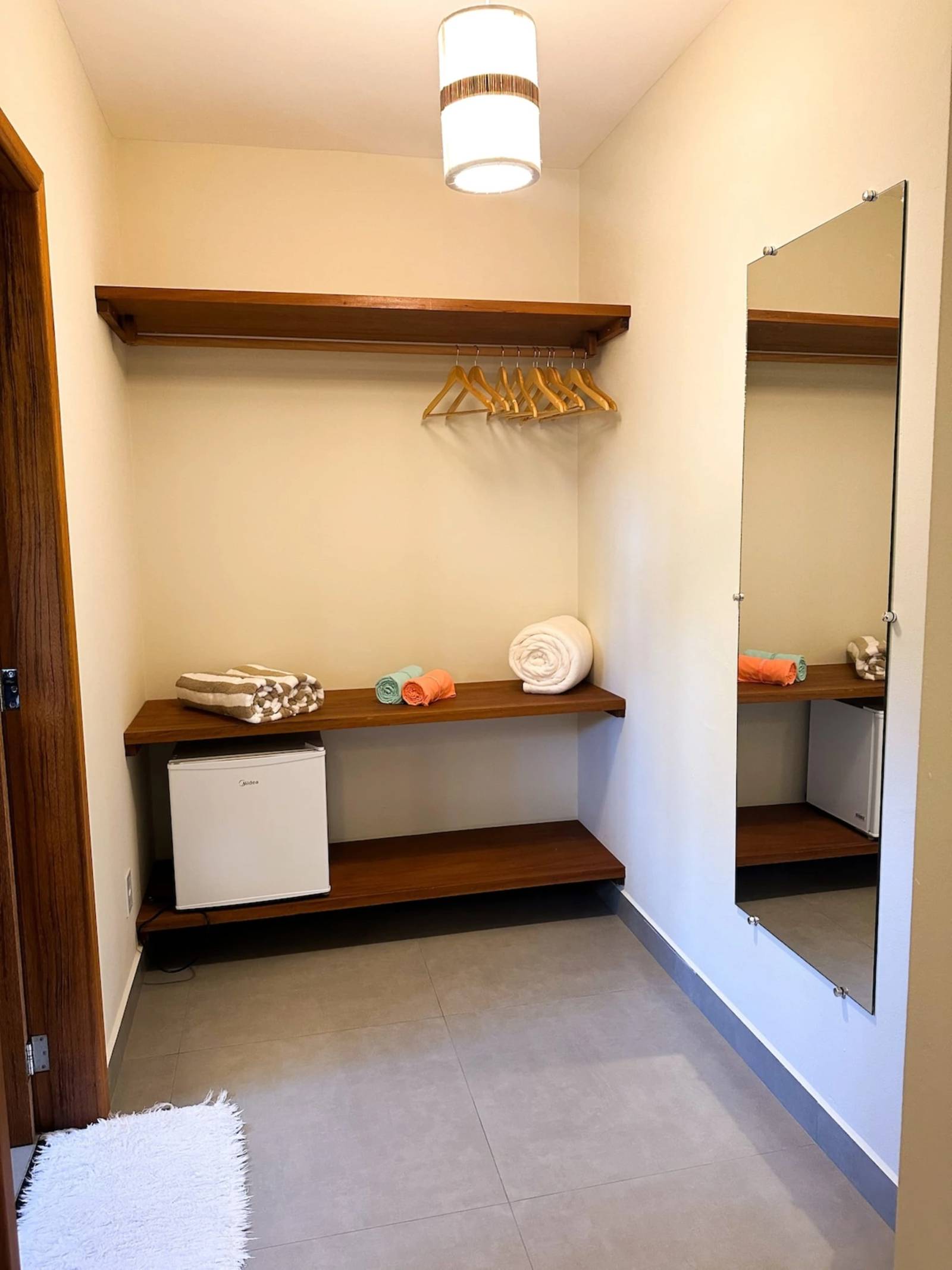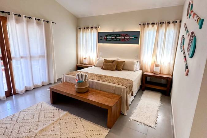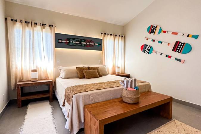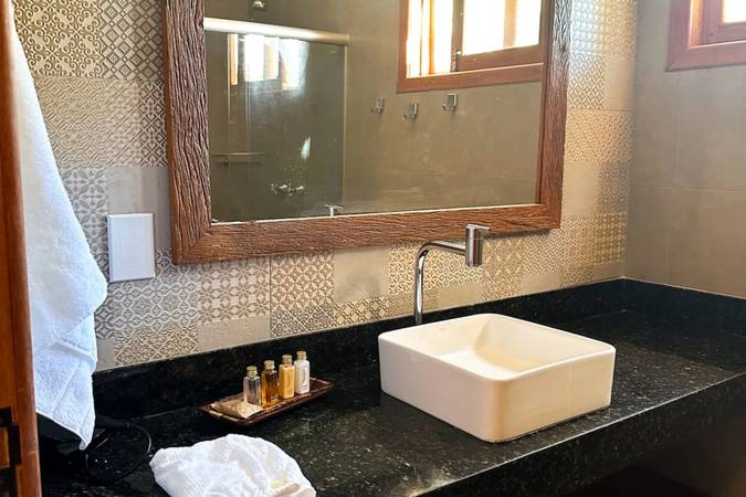 Suíte luxuosa e moderna, situada no andar superior com uma exclusiva varanda e vista para a frente da pousada. Ideal para acomodar um casal em sua confortável cama king size. Decoração requintada, aconchegante e acolhedora. Banheiro amplo com secador de cabelo, toalha própria para remoção de maquiagem e amenities Trousseau. Conta com enxoval Buddemeyer para proporcionar conforto e bem-estar.